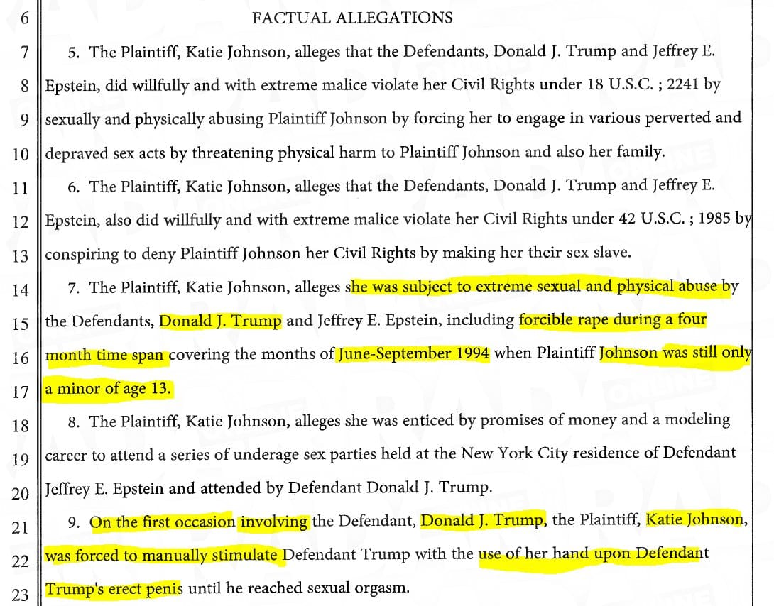 Sin embargo, expuso documentos legales sobre una demanda contra Trump por una demanda de violación sobre una niña de 13 años.