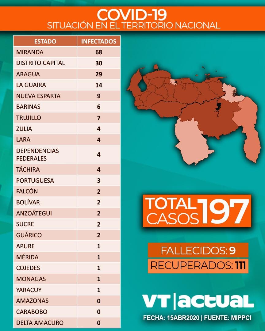 Con esta cifra, el país contabiliza 197 casos de contagio por Coronavirus, de los cuales 111 están recuperados, 30 recluidos en Centros de Diagnóstico Integral (CDI), 25 en hospitales públicos, 20 en clínicas privadas, y dos personas aisladas en hoteles.