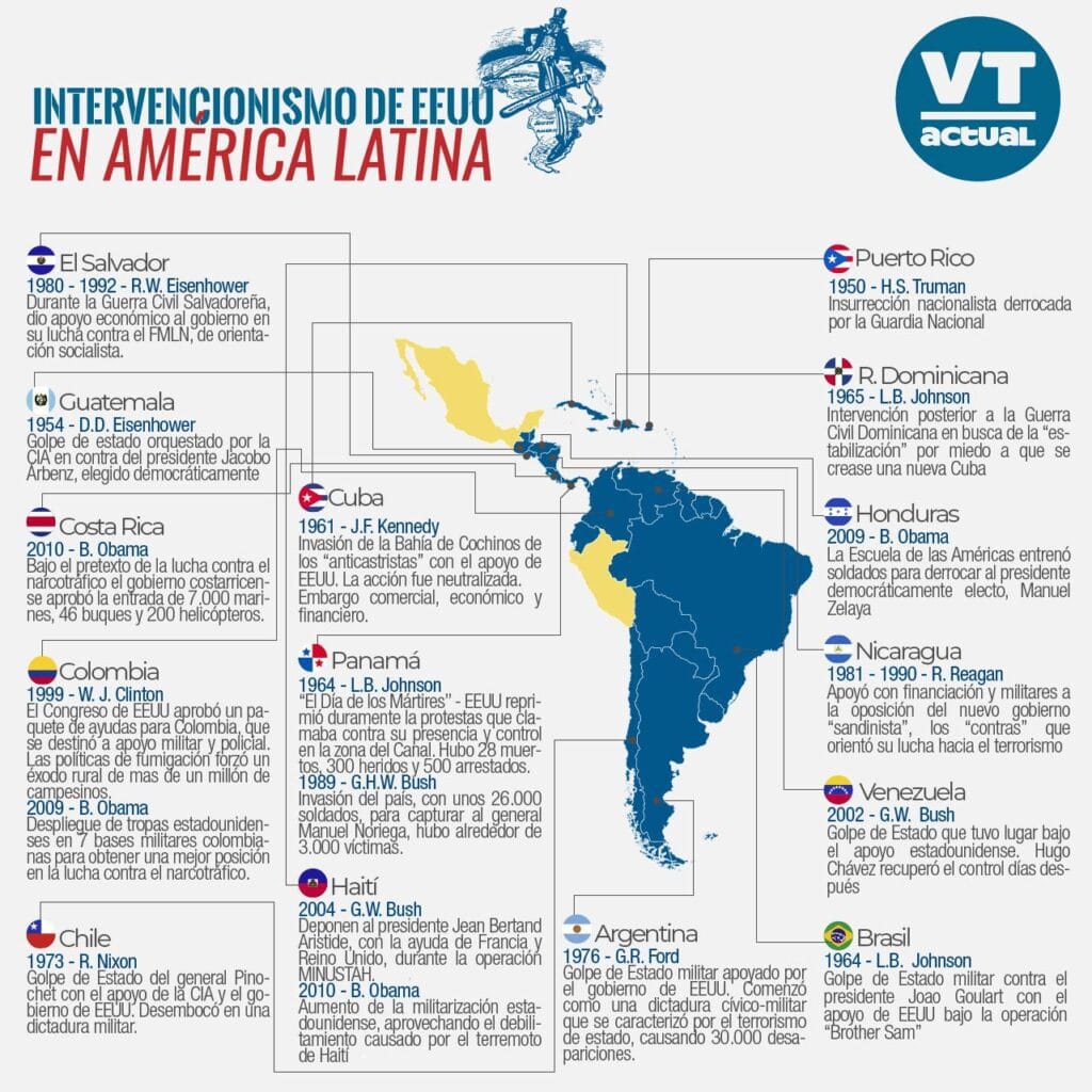 A propósito de las más recientes tentativas adelantadas por el actual gobierno de Estados Unidos para imponer un gobierno a su medida en Venezuela, VTactual le da una repasadita a la historia, en la que ninguno de los gobiernos impuestos por Washington terminó en algo bueno para los pueblos latinoamericanos.